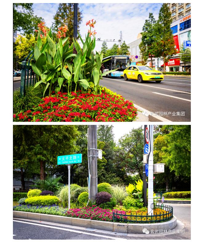 對龍蟠中路新增4處島頭花境,以色彩勾勒豐富的時代感;珠江路、龍蟠中路等綠雕進(jìn)行花卉布置,提升景觀效果,營造節(jié)慶氛圍。