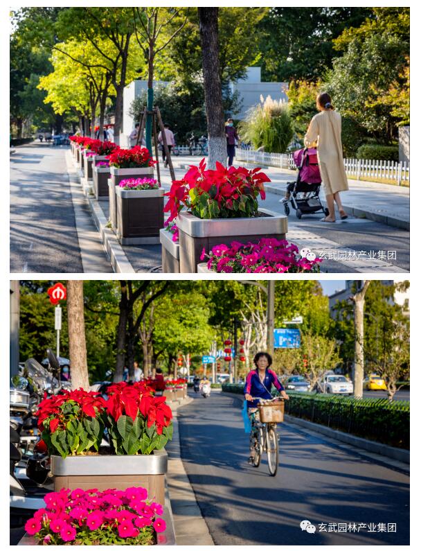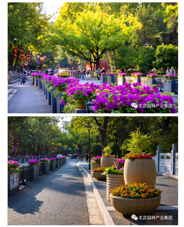 對北京東路、珠江路、市府門前路、太平北路、玄武大道、龍蟠路等綠島及島頭花境選用一品紅、萬壽菊、三角梅、洋鳳仙、麗格海棠、矮牽牛、歐月、藍(lán)雪花、超級海棠、翠蘆莉、一串紅、孔雀草、石竹等靚麗多彩、品相精致的花卉進(jìn)行布置,城市街景處處繁花似錦、百花齊放,營造栩栩如生、欣欣向榮的景觀效果。