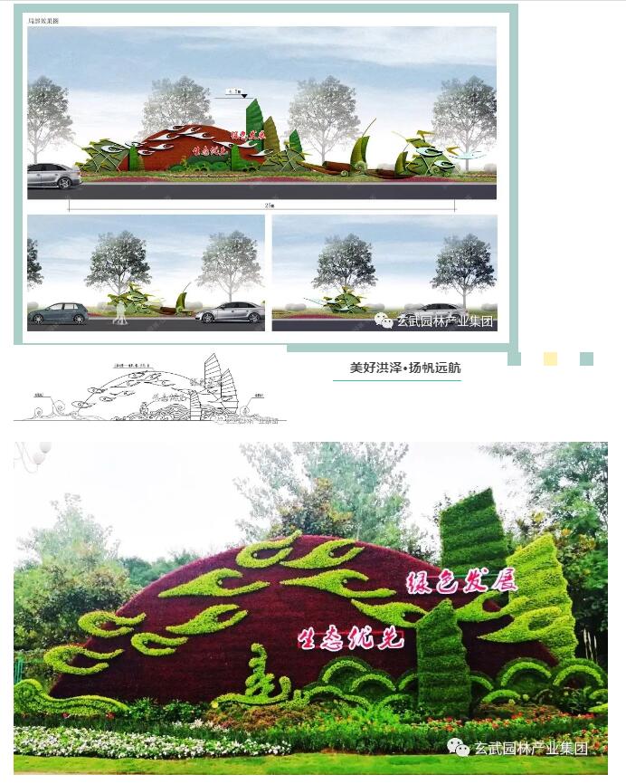 整體綠雕設(shè)計(jì)具有濃郁的水鄉(xiāng)文化特色,初升的旭日給洪澤帶來(lái)了晨曦,翱翔的鷺鳥(niǎo)展現(xiàn)著城市的魅力,在四方友人的美好希冀下,洪澤將更蓬勃發(fā)展、生機(jī)盎然。